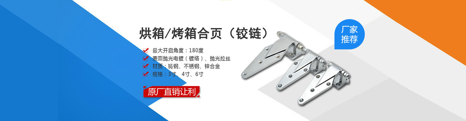 平門鉸鏈鋅全金材質(zhì)鍍亮鉻,用于冷柜櫥柜門上.